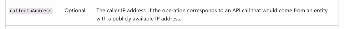 Let’s start by looking at IP addresses. The common top level schema for resource logs contains an optional callerIpAddress field that is described by Microsoft as: