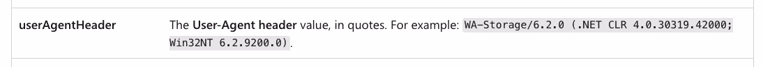 }Although, only sort of. For logs related to a small number of key vault operations (including VaultGet) only some of the UA is included in the clientInfo field. From my testing, it seems as though Azure is stripping any leading whitespace and then truncating the UA at the next white space character. For example: